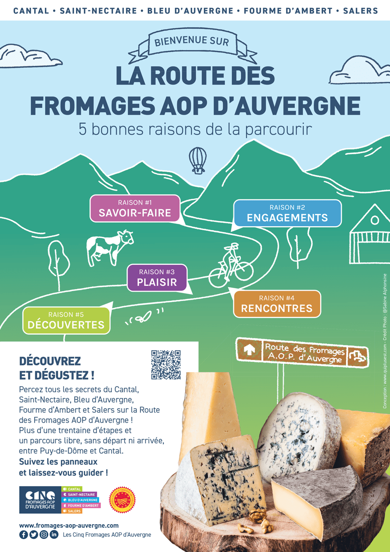 Après plus de 26 ans d’existence, l’Association des fromages d’Auvergne réaffirme ses engagements pour mettre en lumière ce circuit agro-touristique qui a pour fil conducteur la fabrication des fromages AOP d’Auvergne. Autant de fromages que de bonnes raisons de suivre la route des fromages AOP d’Auvergne !