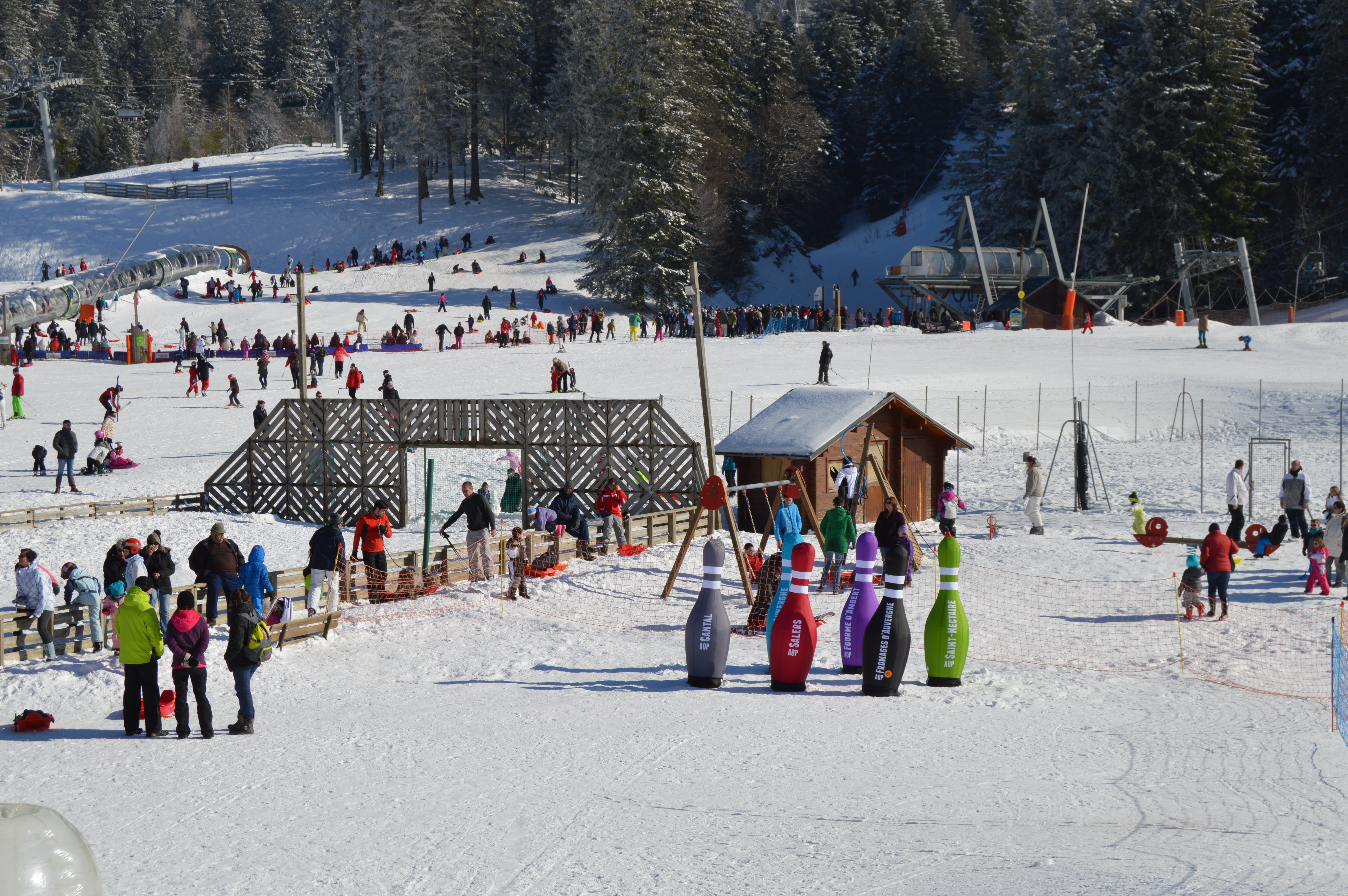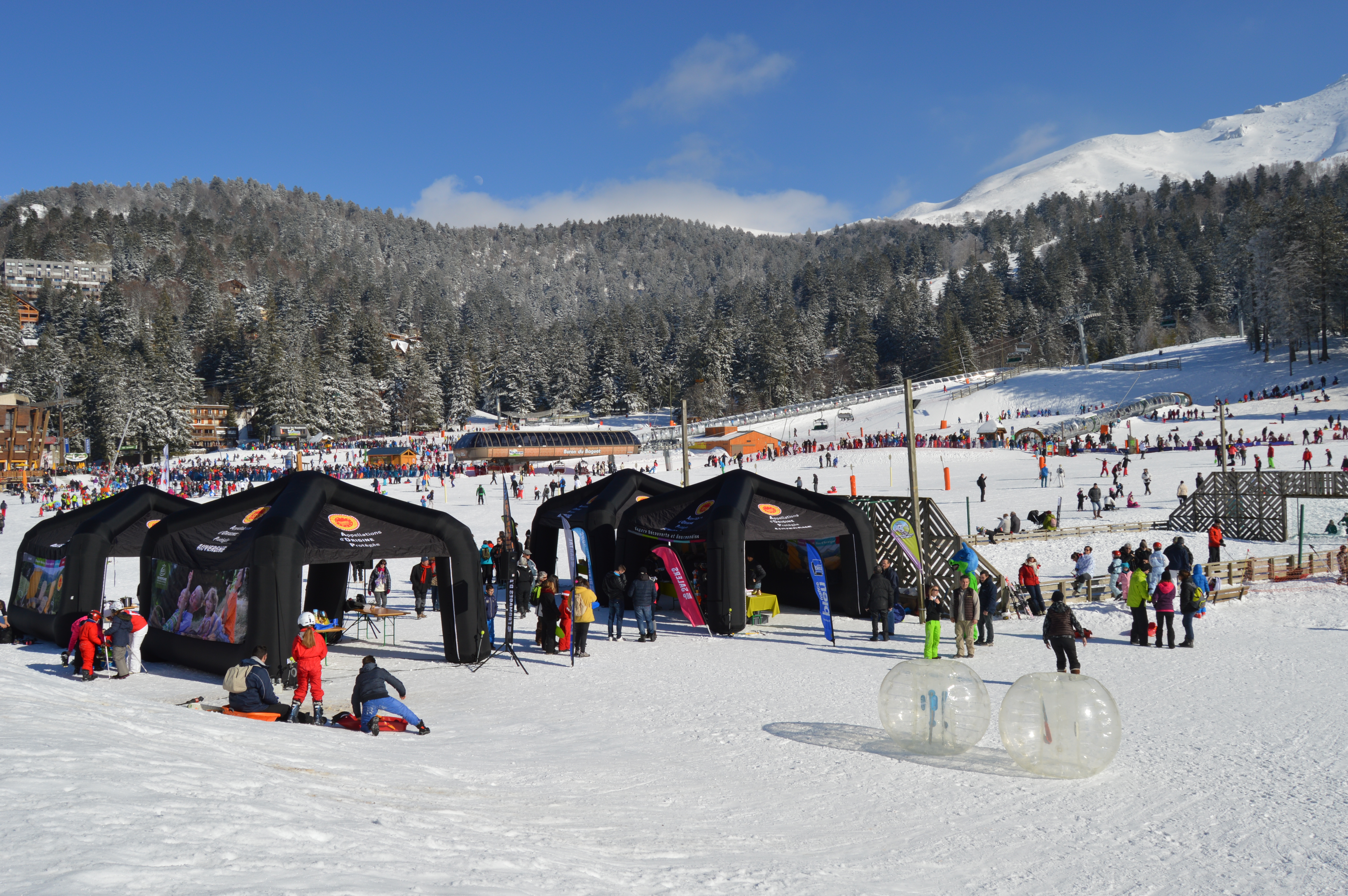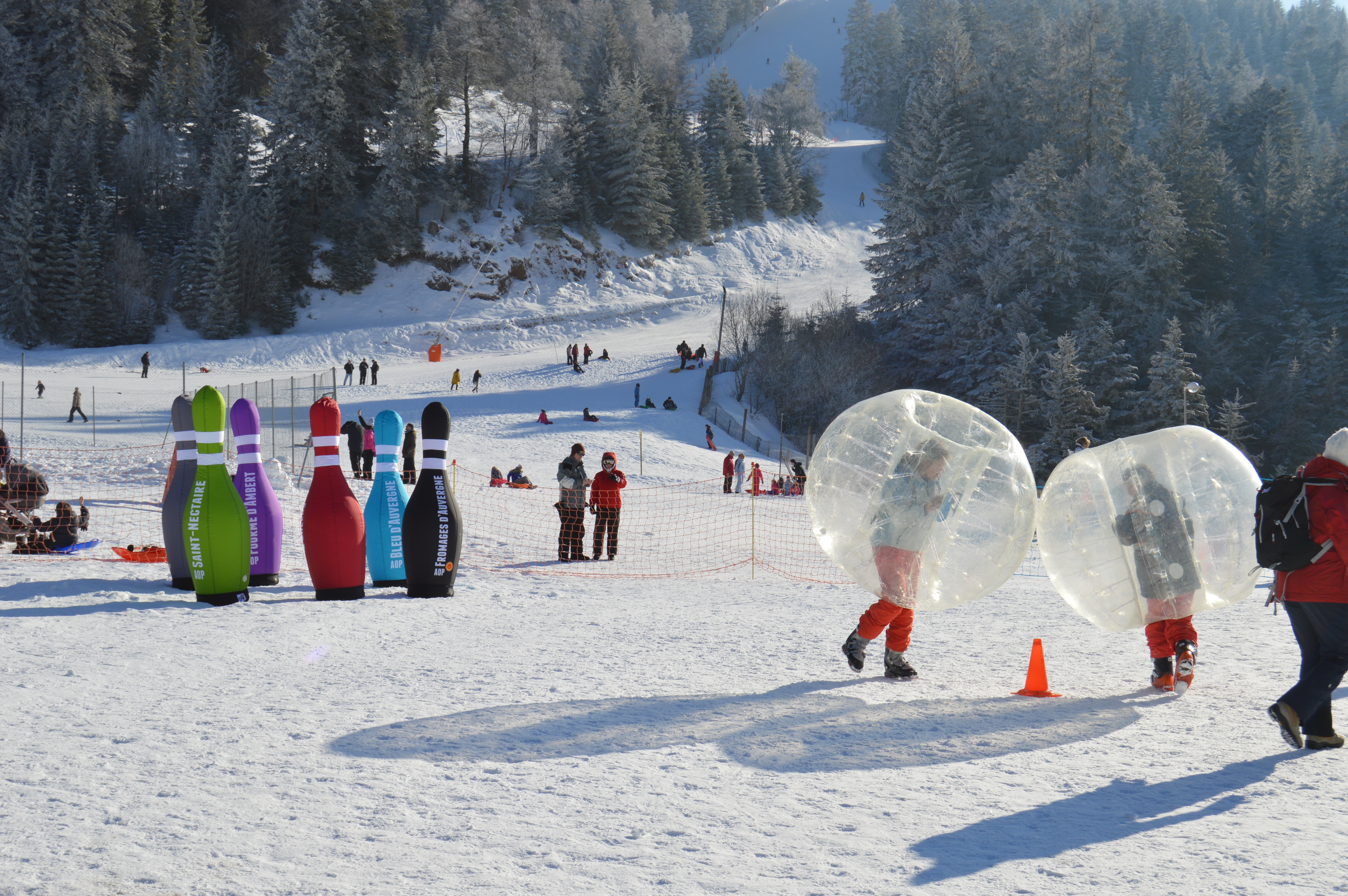 En exclusivité sur les pistes de ski du Massif Central, venez tester notre jeu de bowling à taille humaine. Grimpez dans une bulle gonflable et tentez de dégommer les quilles à l’effigie de vos fromages préférés. Un max de sensations et de fun !